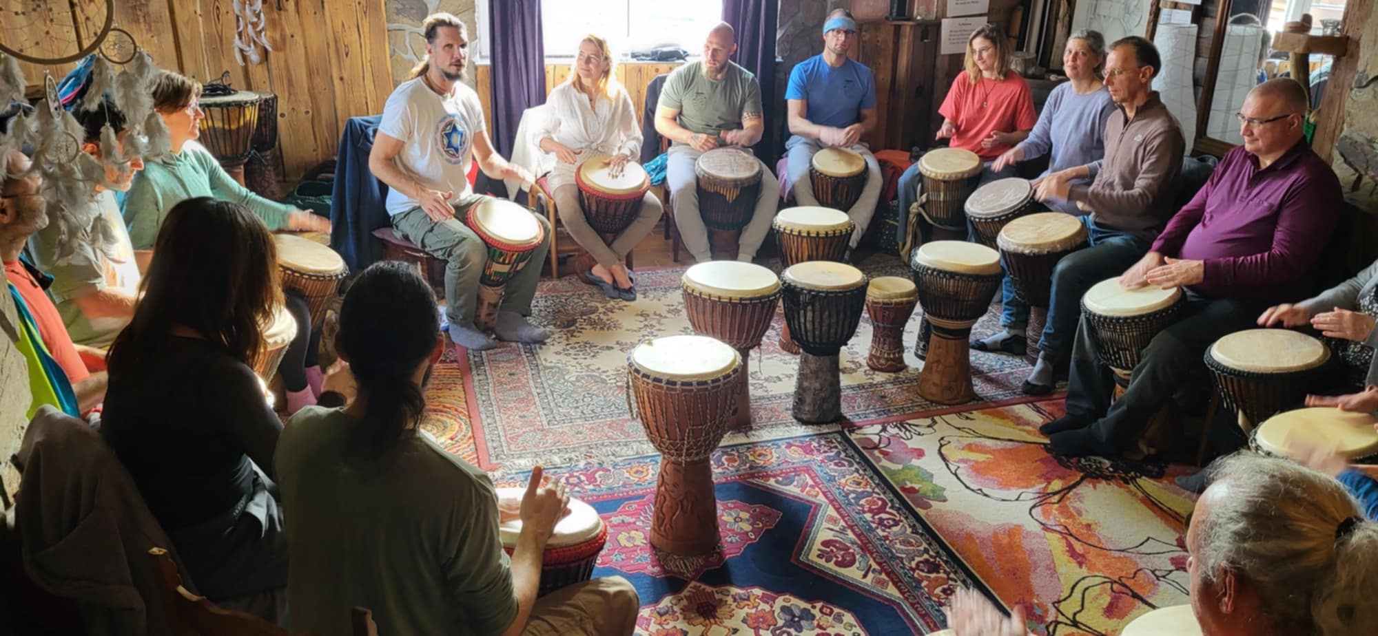 Dobrdodošli ljudje na naše kroge, kjer gojimo ritem, zvok in prisotnost, ... to so majhne trenutne skupnosti, kjer lahko vedno vsak najde mesto zase.